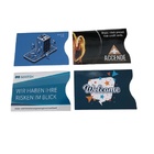 Schützen Sie Ihre Bank- und Kreditkarten vor unerlaubtem Zugriff mit unseren RFID- und NFC-Schutzhüllen. Diese Hüllen blockieren das unbefugte Auslesen Ihrer sensiblen Daten und bieten gleichzeitig die Möglichkeit, Ihre Marke zu präsentieren.
